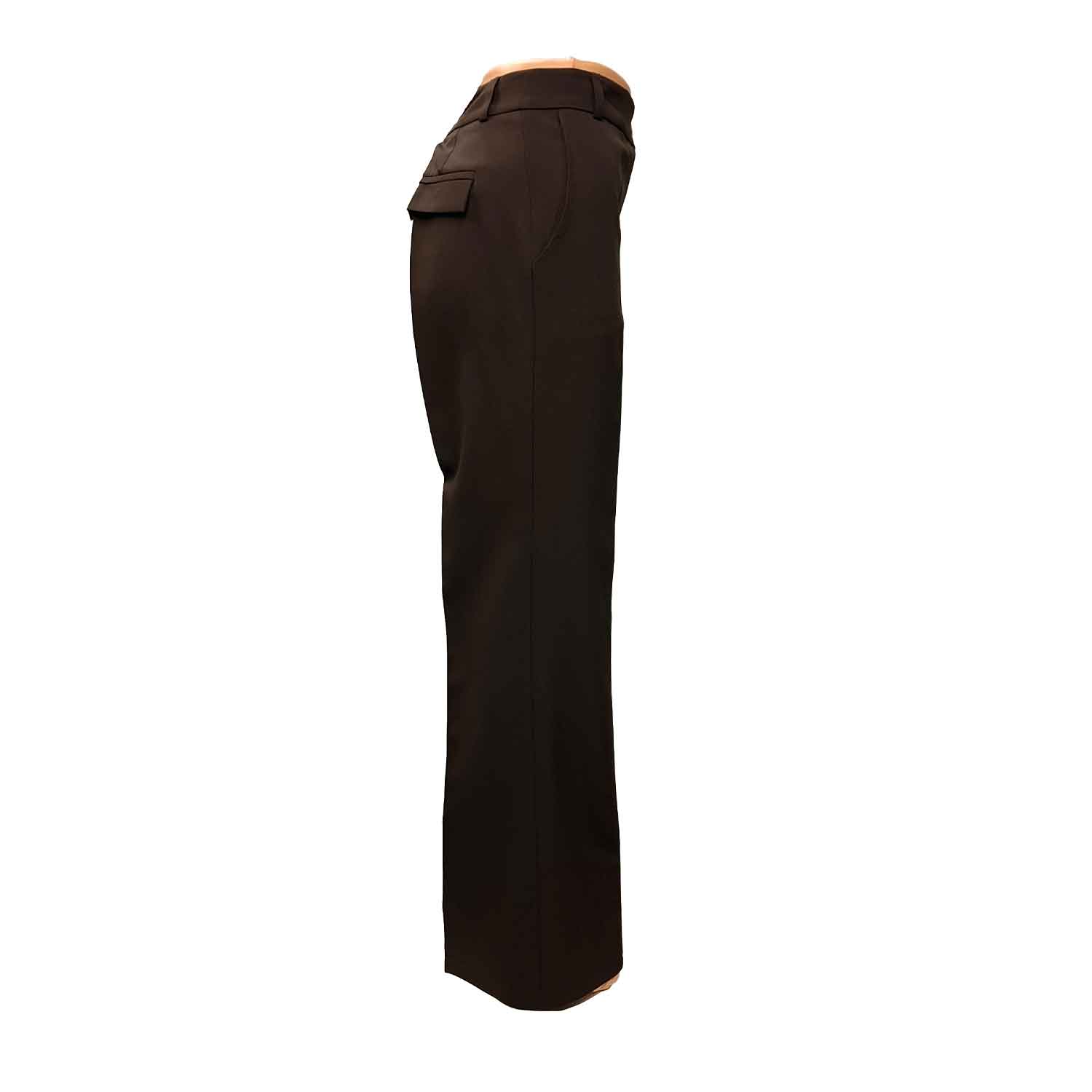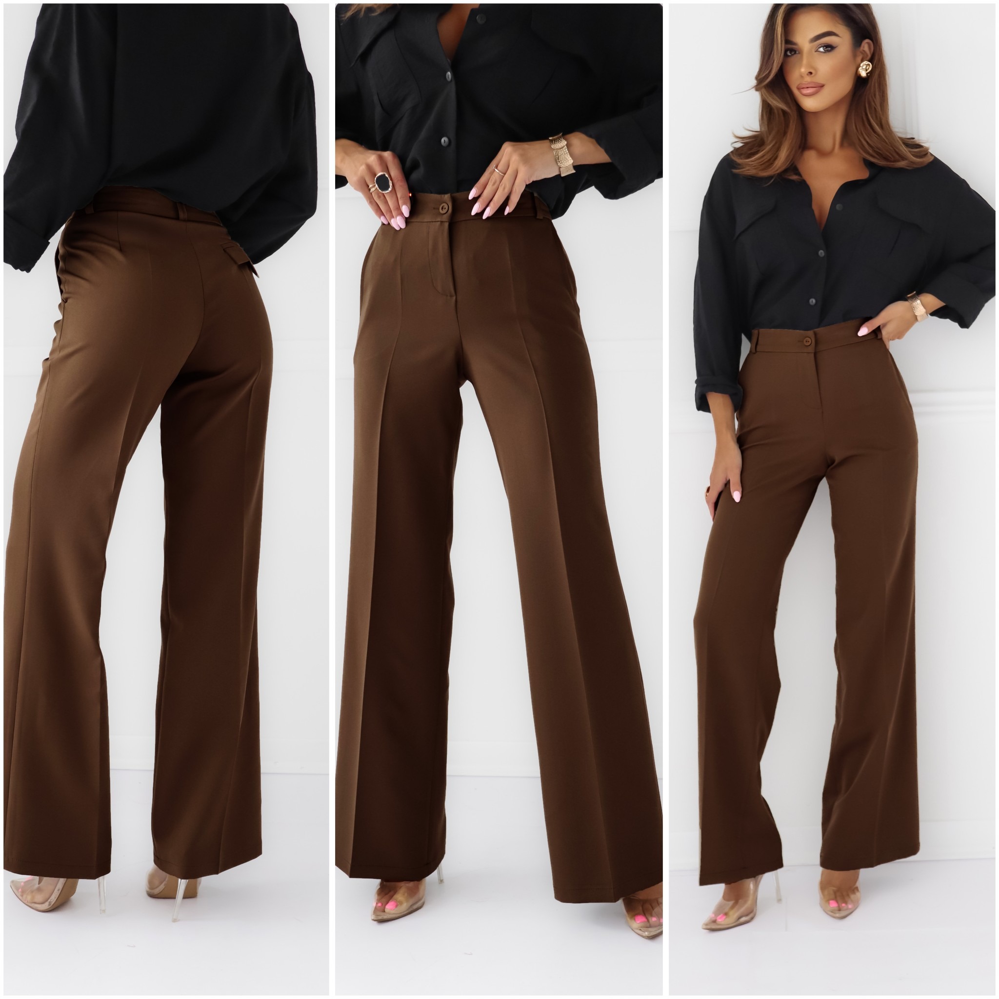 Stilingos, plačios kelnės žemesniu liemeniu, užsegamos užtrauktuku ir saga. Yra kišenės.