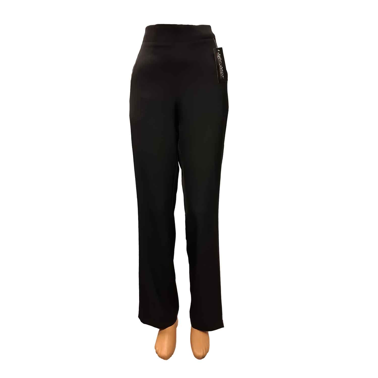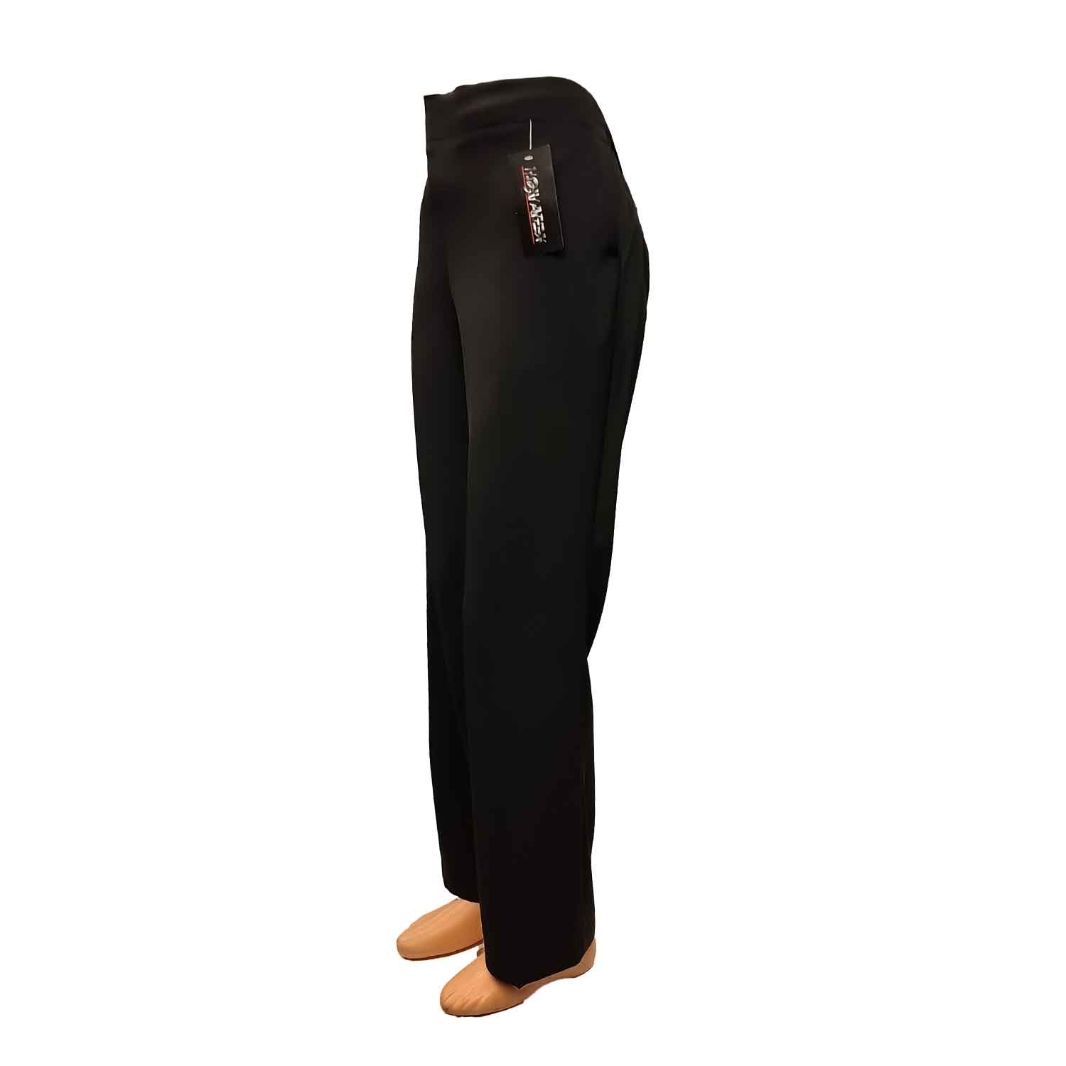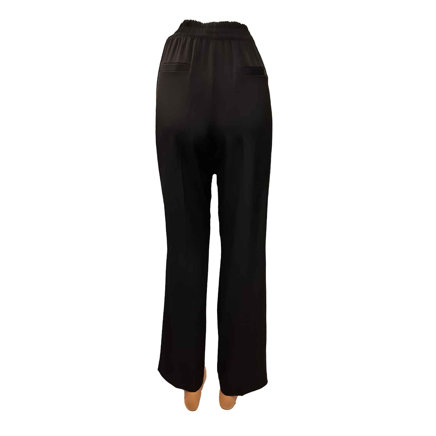 Juodos laisvo kritimo plonos kelnės su kišenėmis ir guma per liemenį. Be užtrauktuko ir sagų.