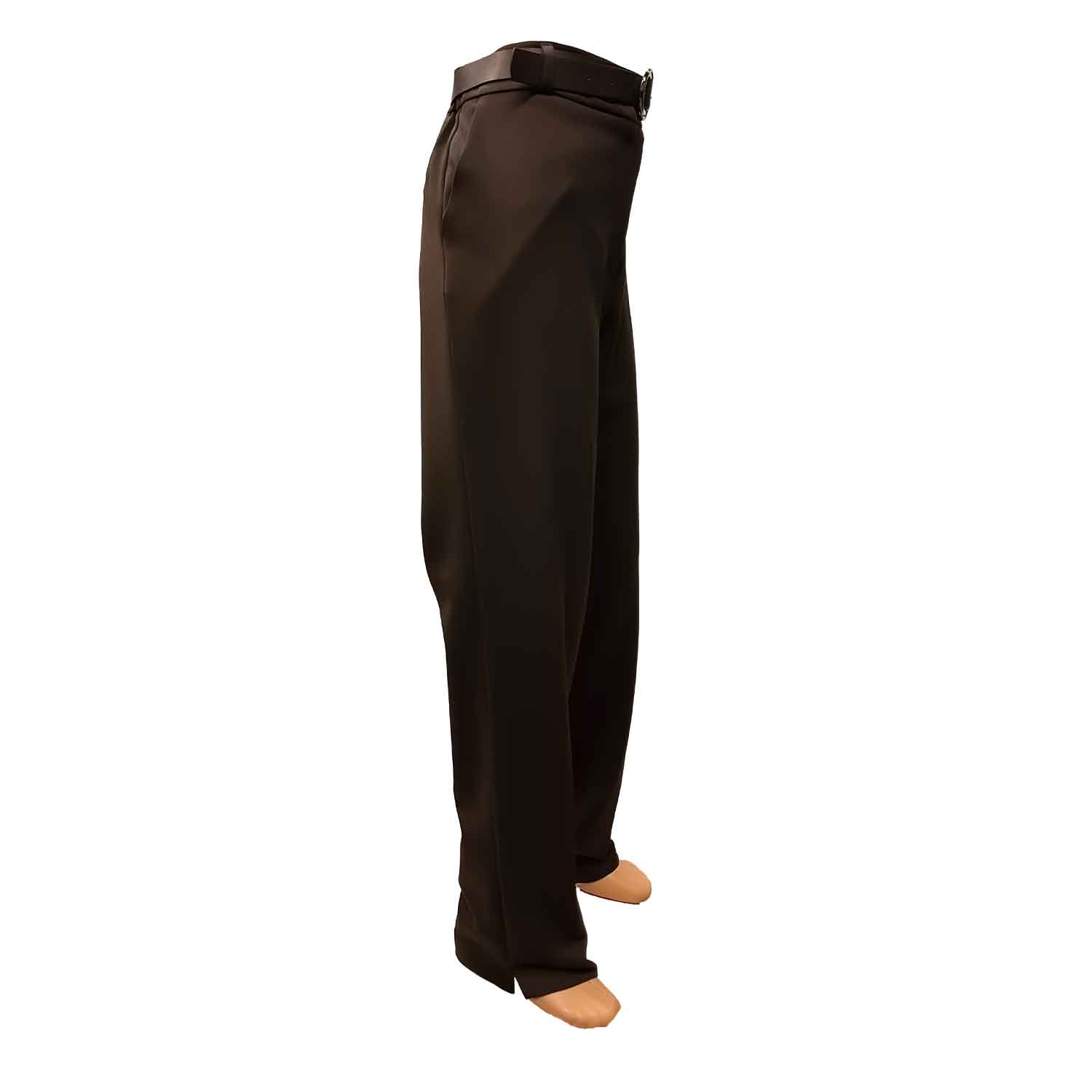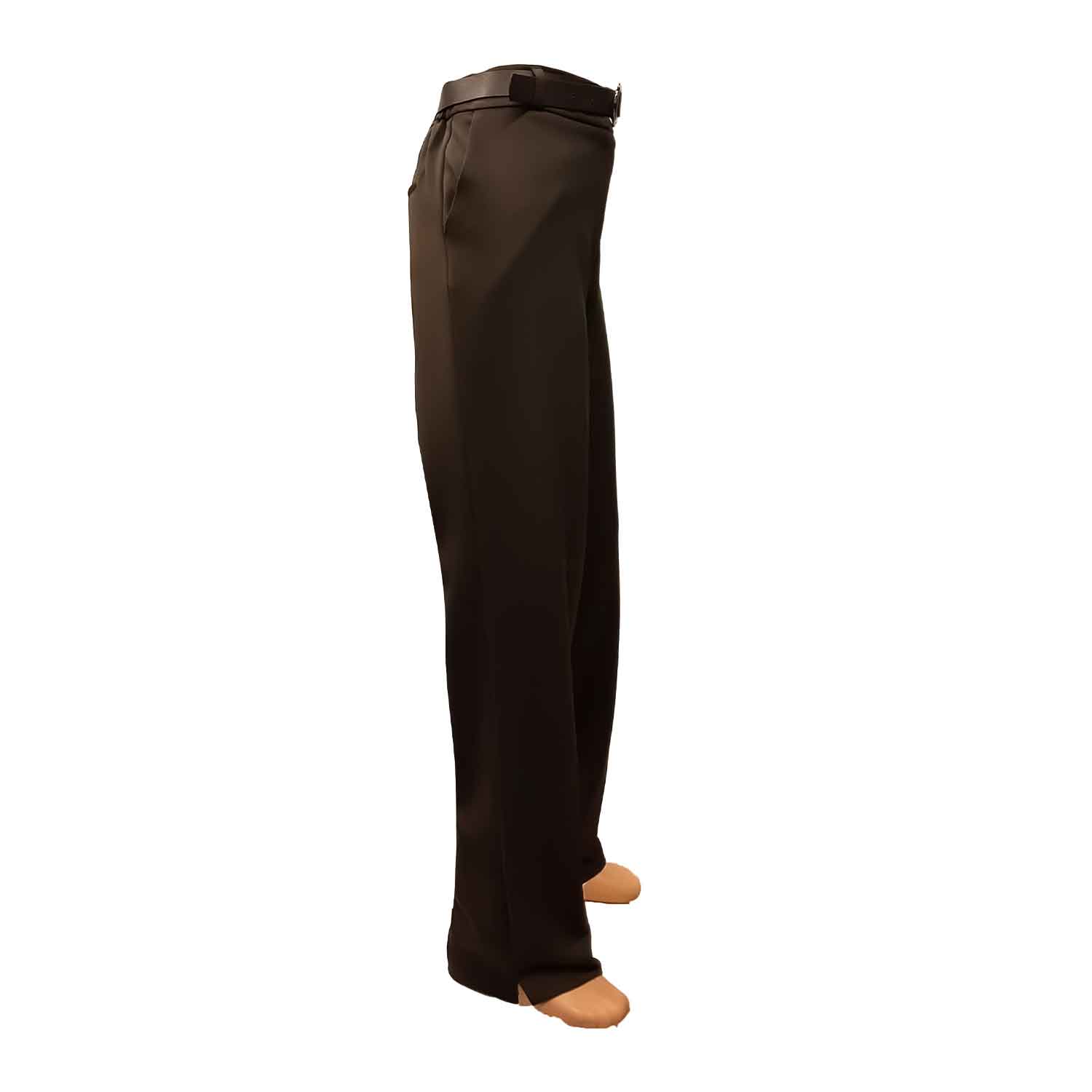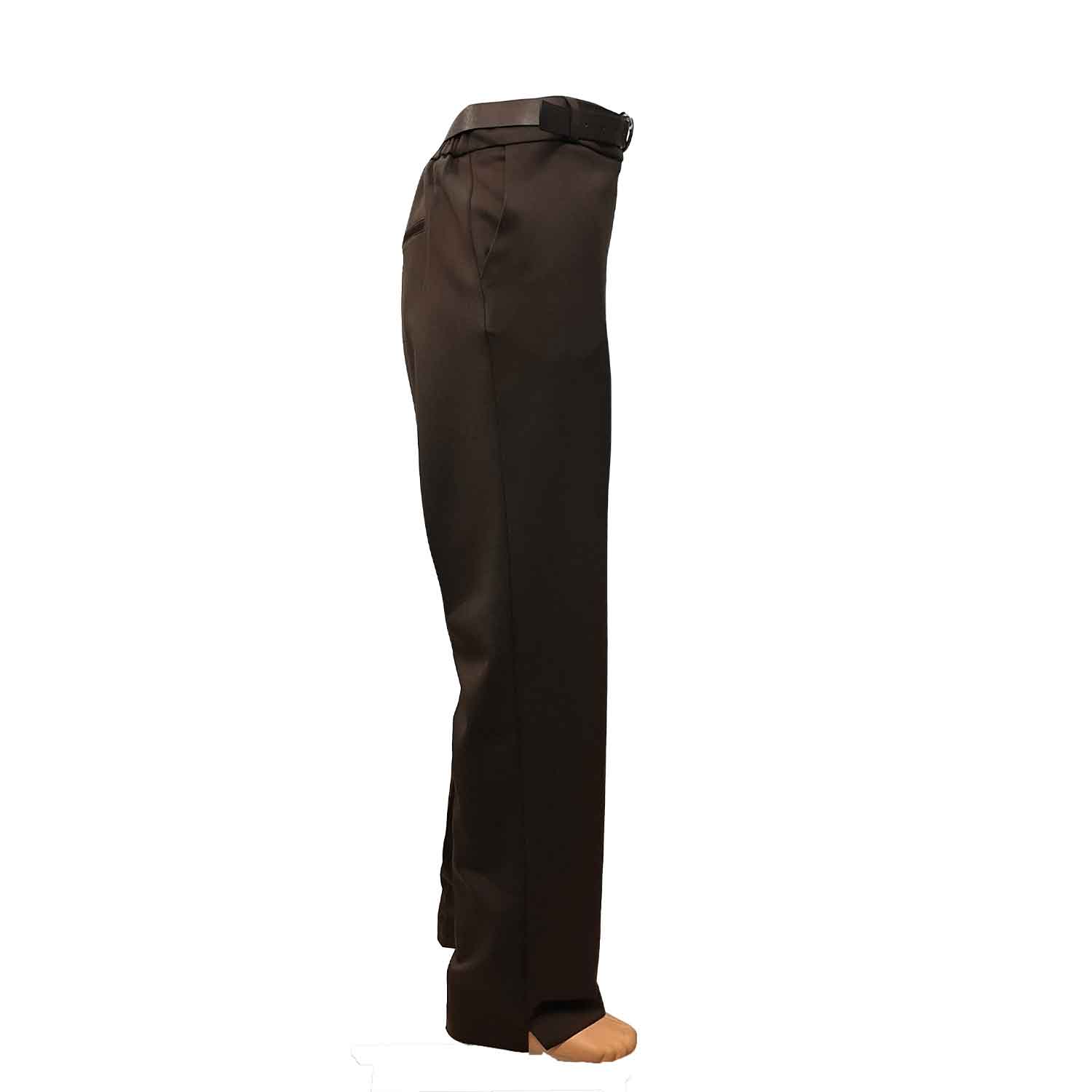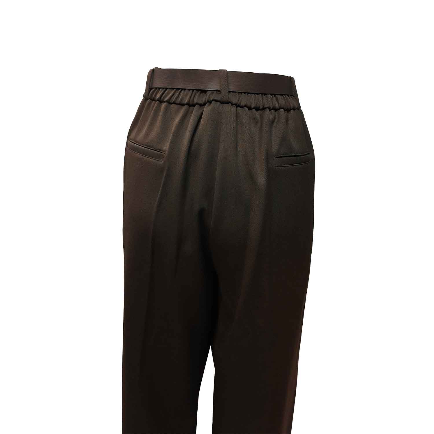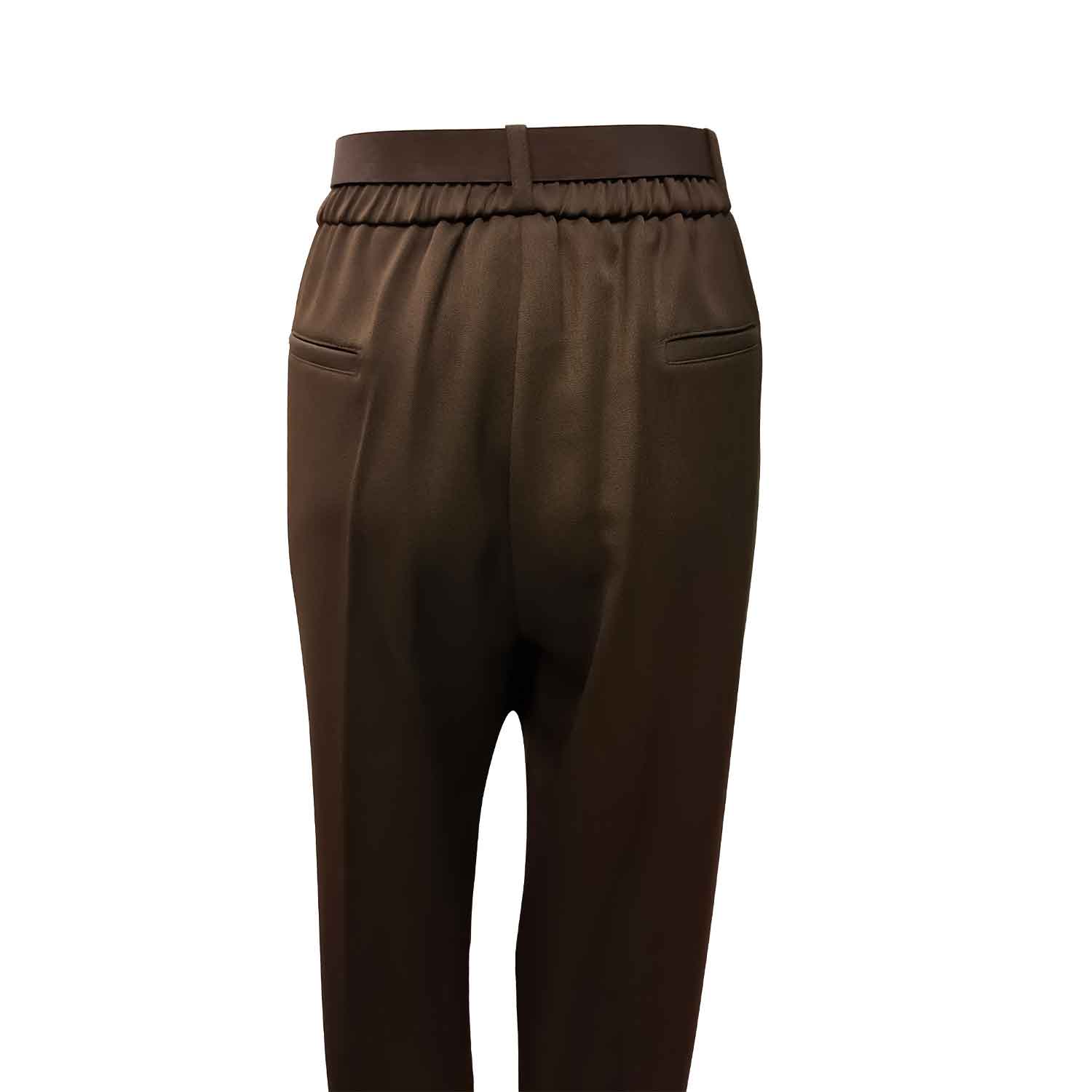 Patogios rudos tiesios kelnės moterims su guma per liemenį, užsegamos užtrauktuku ir saga. Yra kišenės.