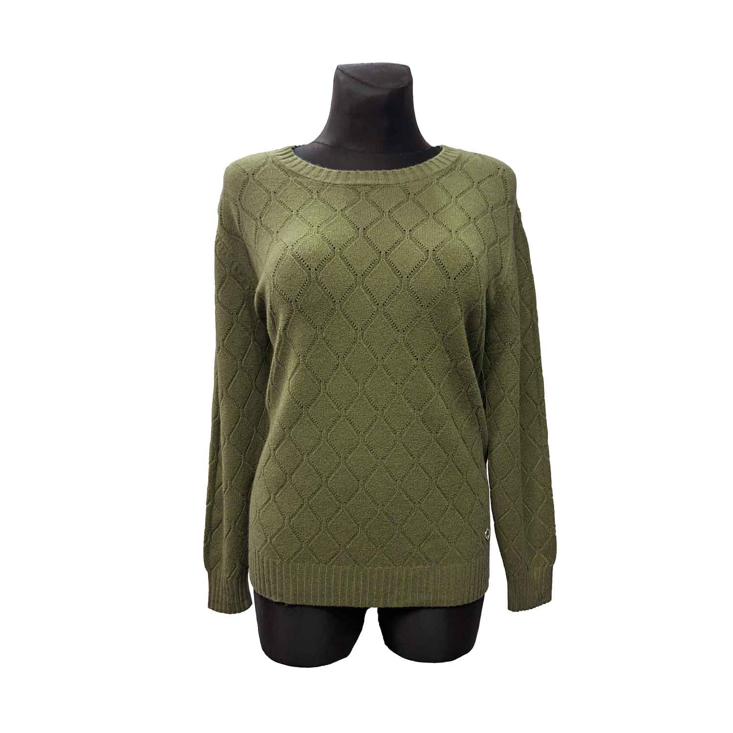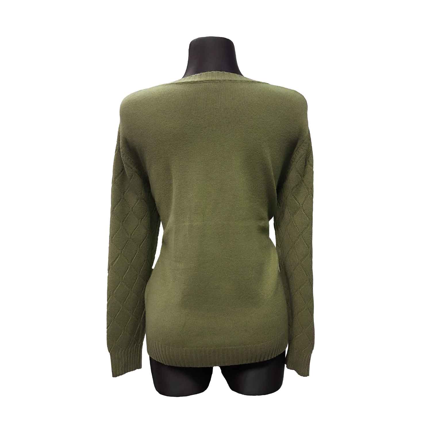 Žalias megztukas kiekvienai dienai ilgomis rankovėmis. Tinka po klasikiniu švarku.