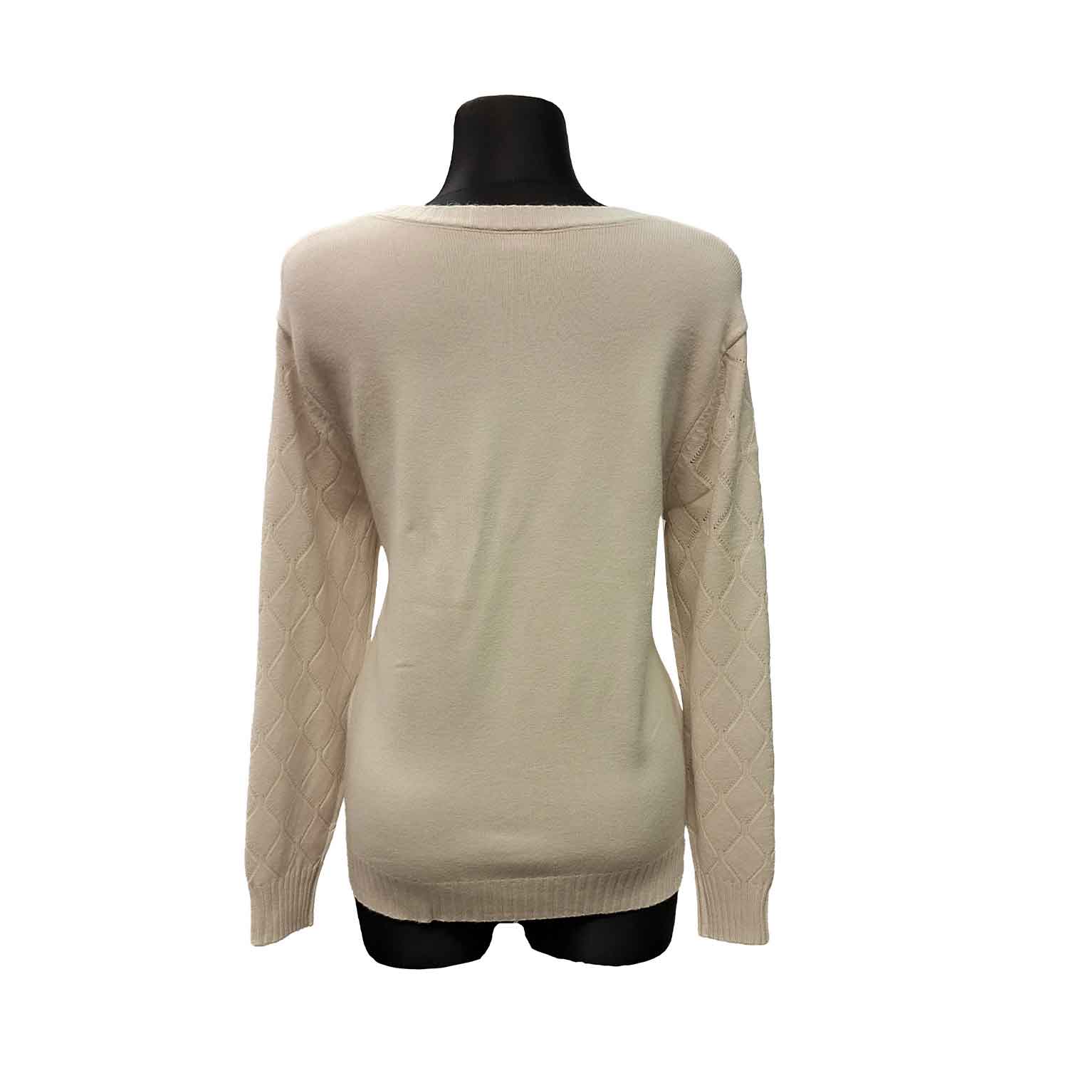 Smėlio spalvos megztukas kiekvienai dienai ilgomis rankovėmis. Tinka po klasikiniu švarku.