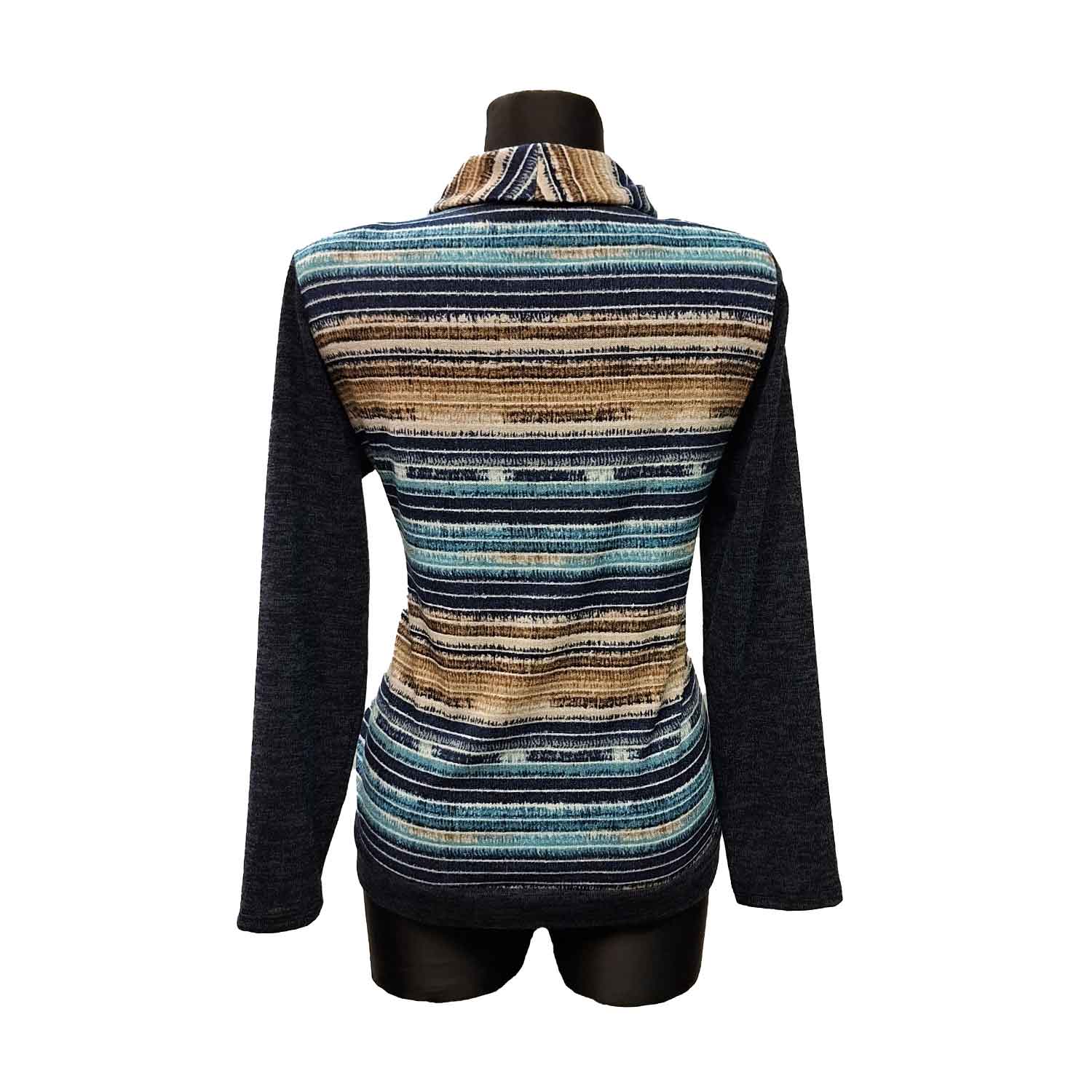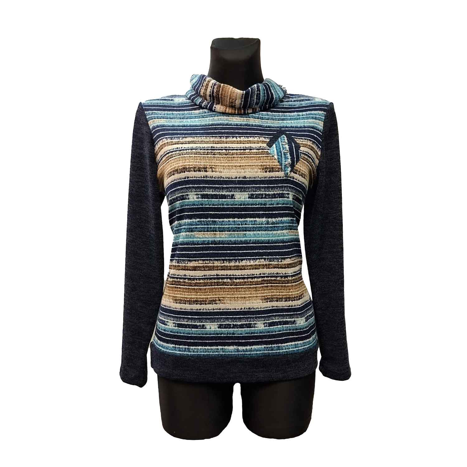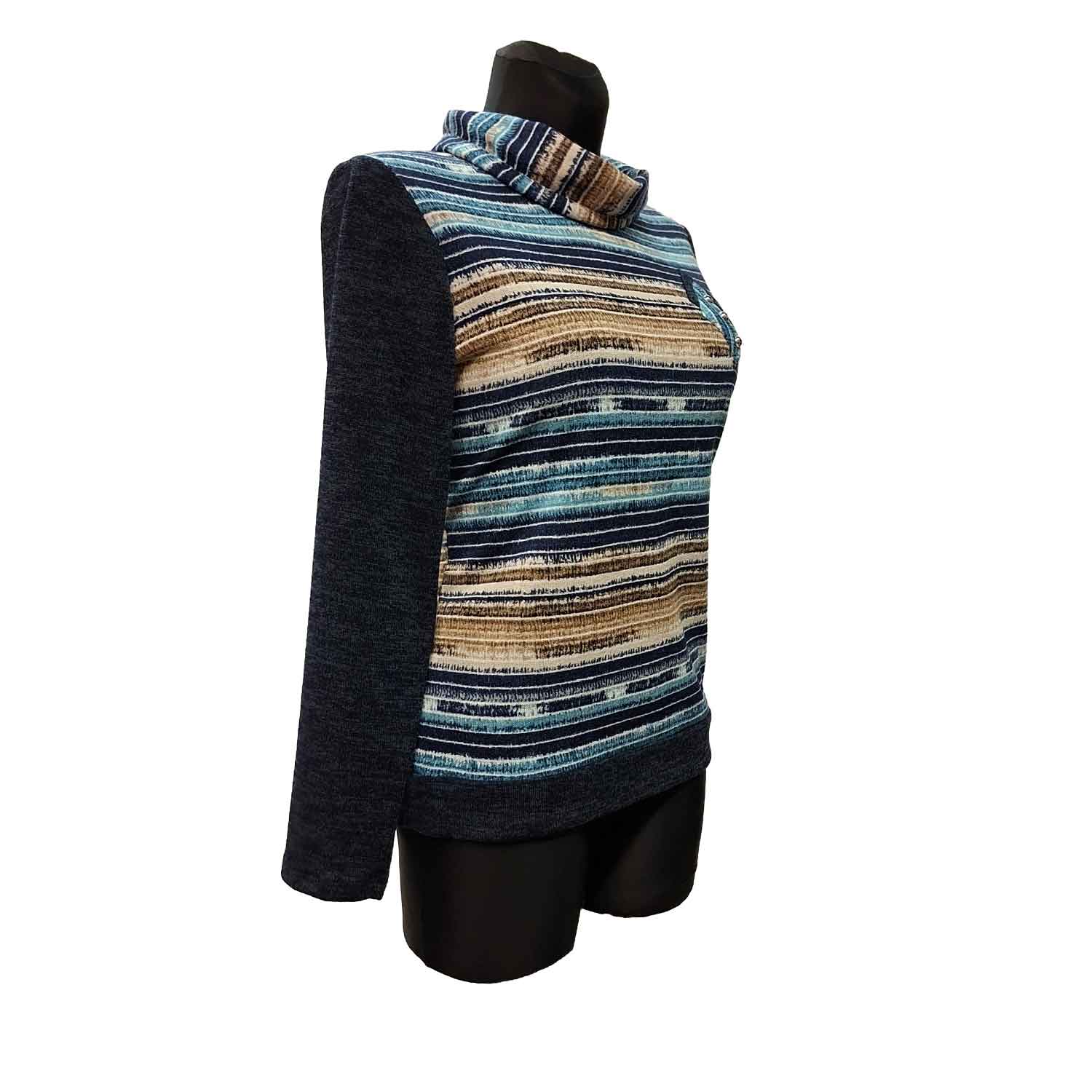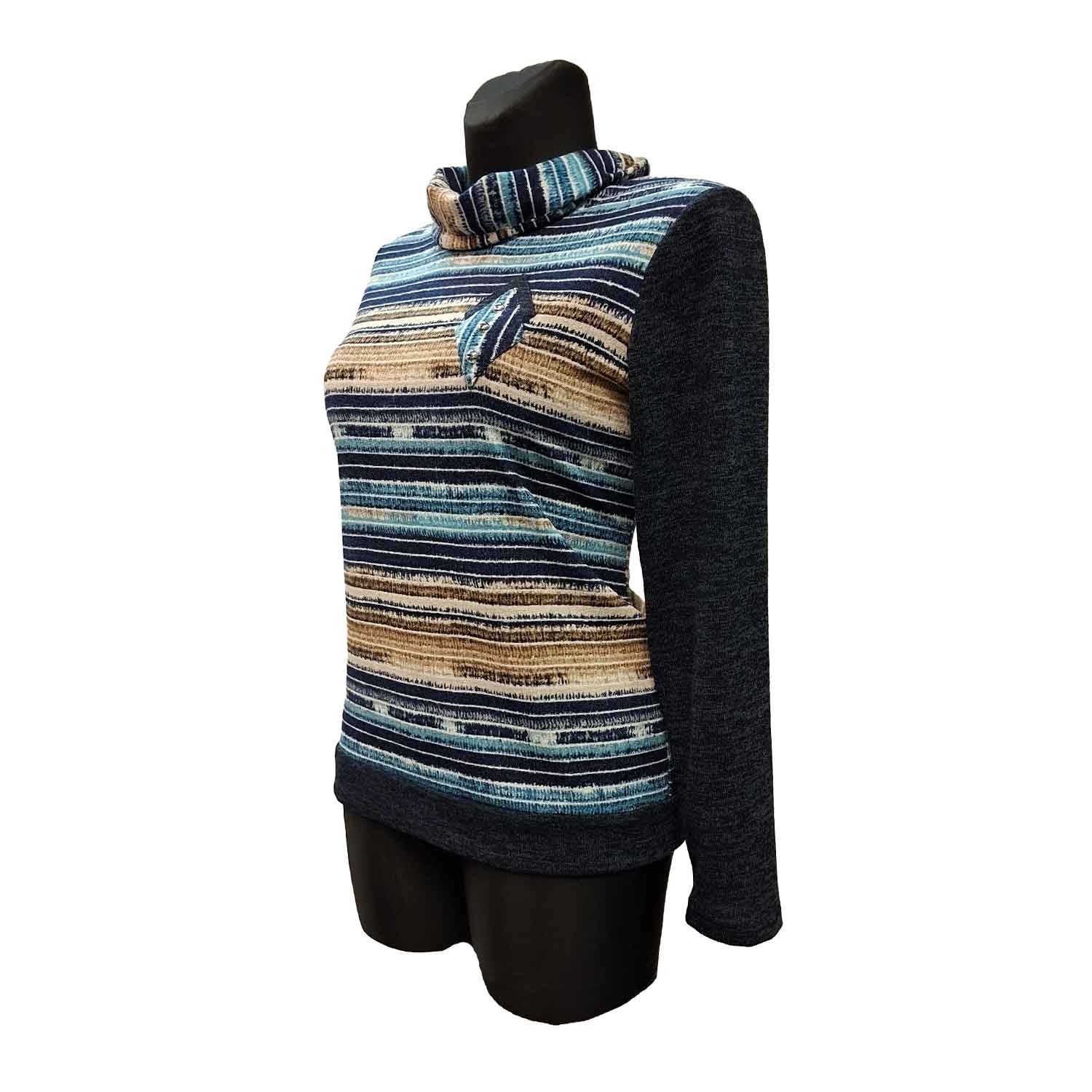 Minkšto audinio palaidinė aukštu kaklu.