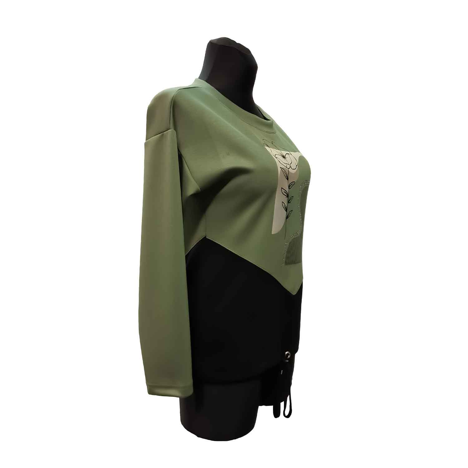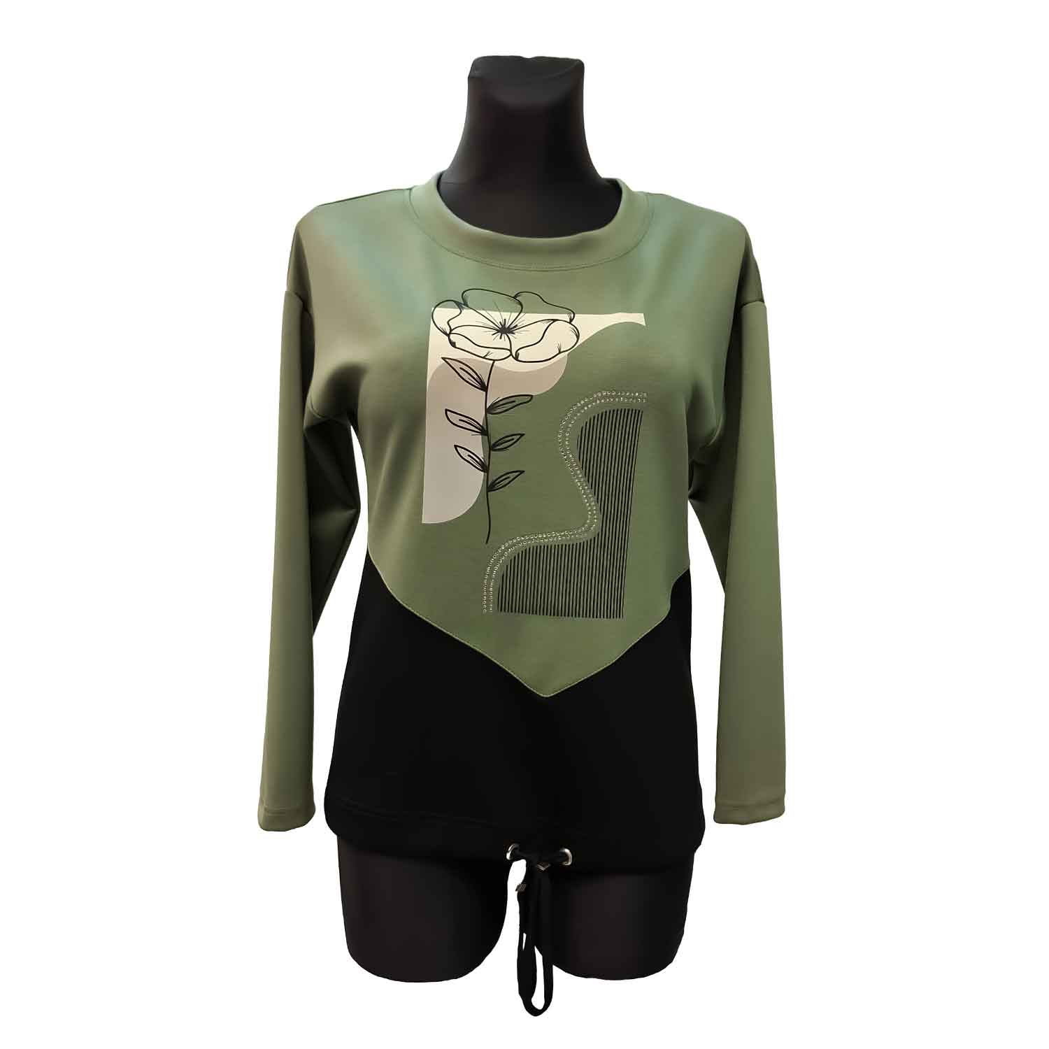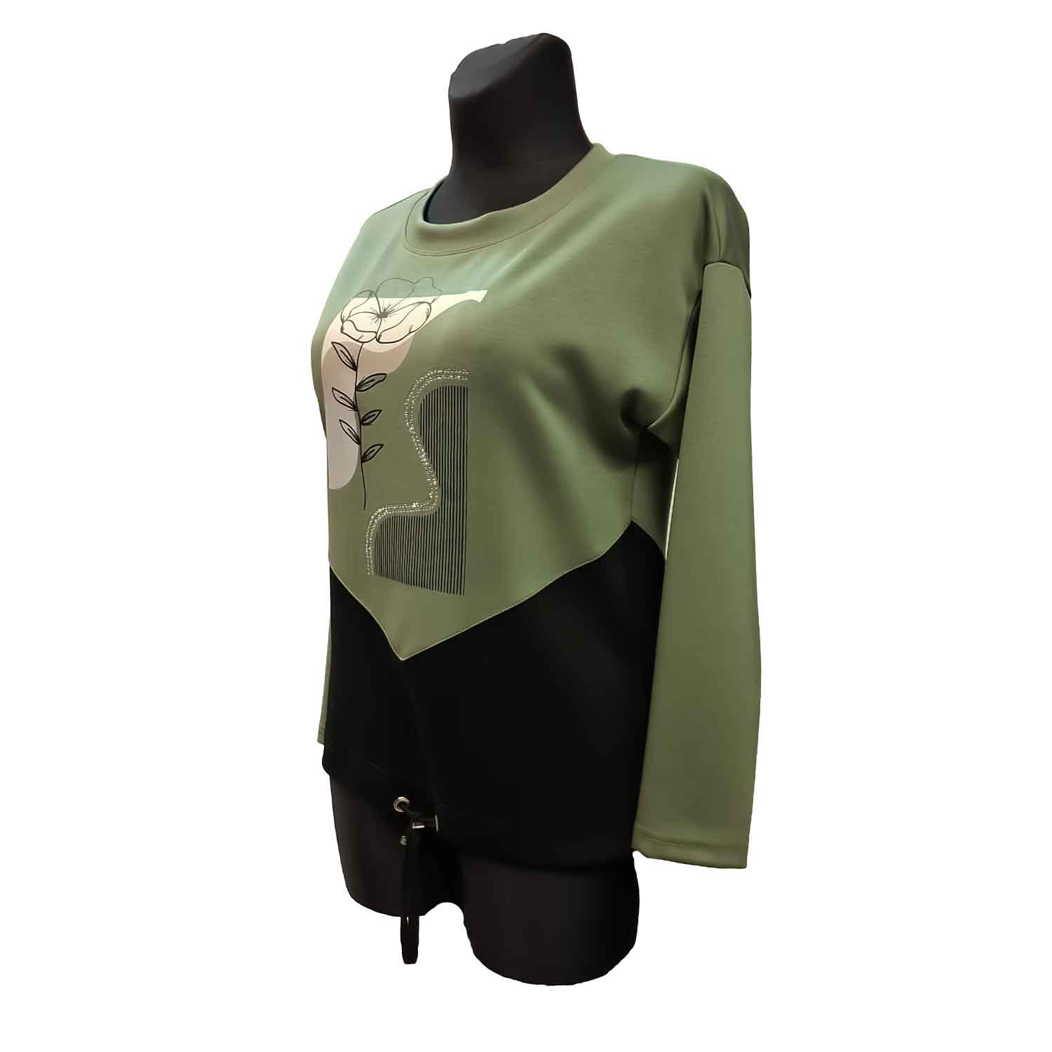 Stilinga palaidinė ilgomis rankovėmis, nuleistais pečiais, dekoruota grafiniu raštu. Lengvai derinama prie džinsų ar klasikinių kelnių, puikiai tinka tiek kasdienai, tiek laisvalaikiui.