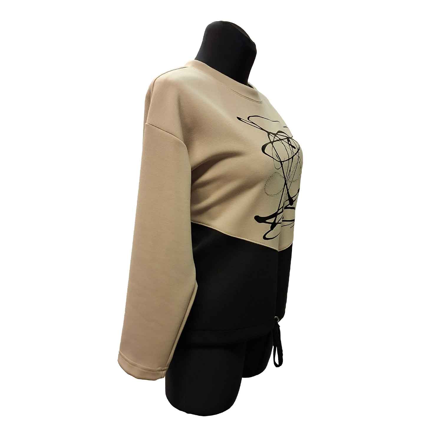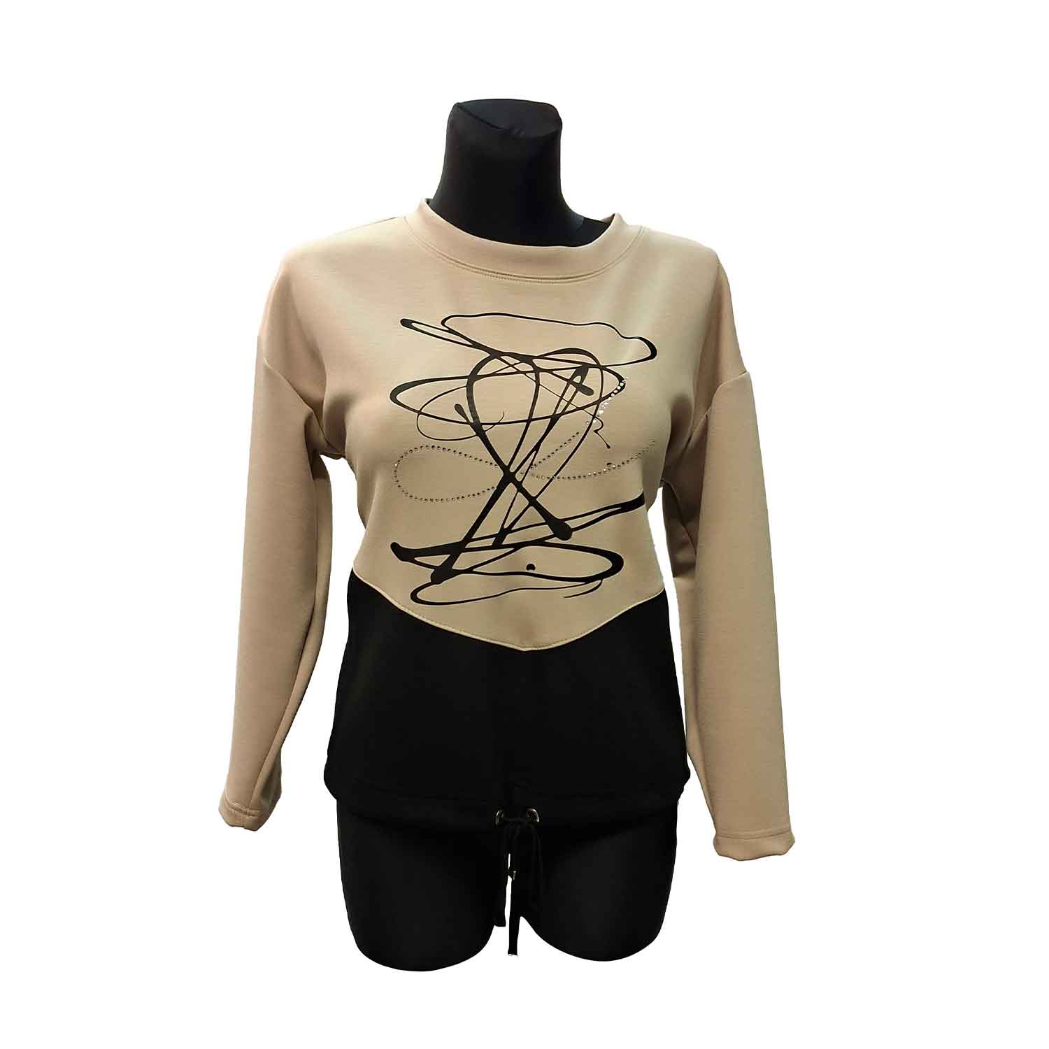 Stilinga palaidinė ilgomis rankovėmis, nuleistais pečiais, dekoruota grafiniu raštu. Lengvai derinama prie džinsų ar klasikinių kelnių, puikiai tinka tiek kasdienai, tiek laisvalaikiui.