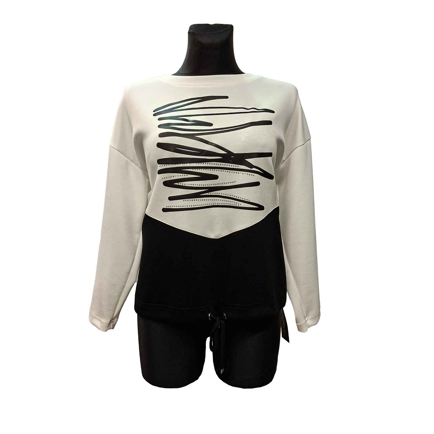 Stilinga palaidinė ilgomis rankovėmis, nuleistais pečiais, dekoruota grafiniu raštu. Lengvai derinama prie džinsų ar klasikinių kelnių, puikiai tinka tiek kasdienai, tiek laisvalaikiui.