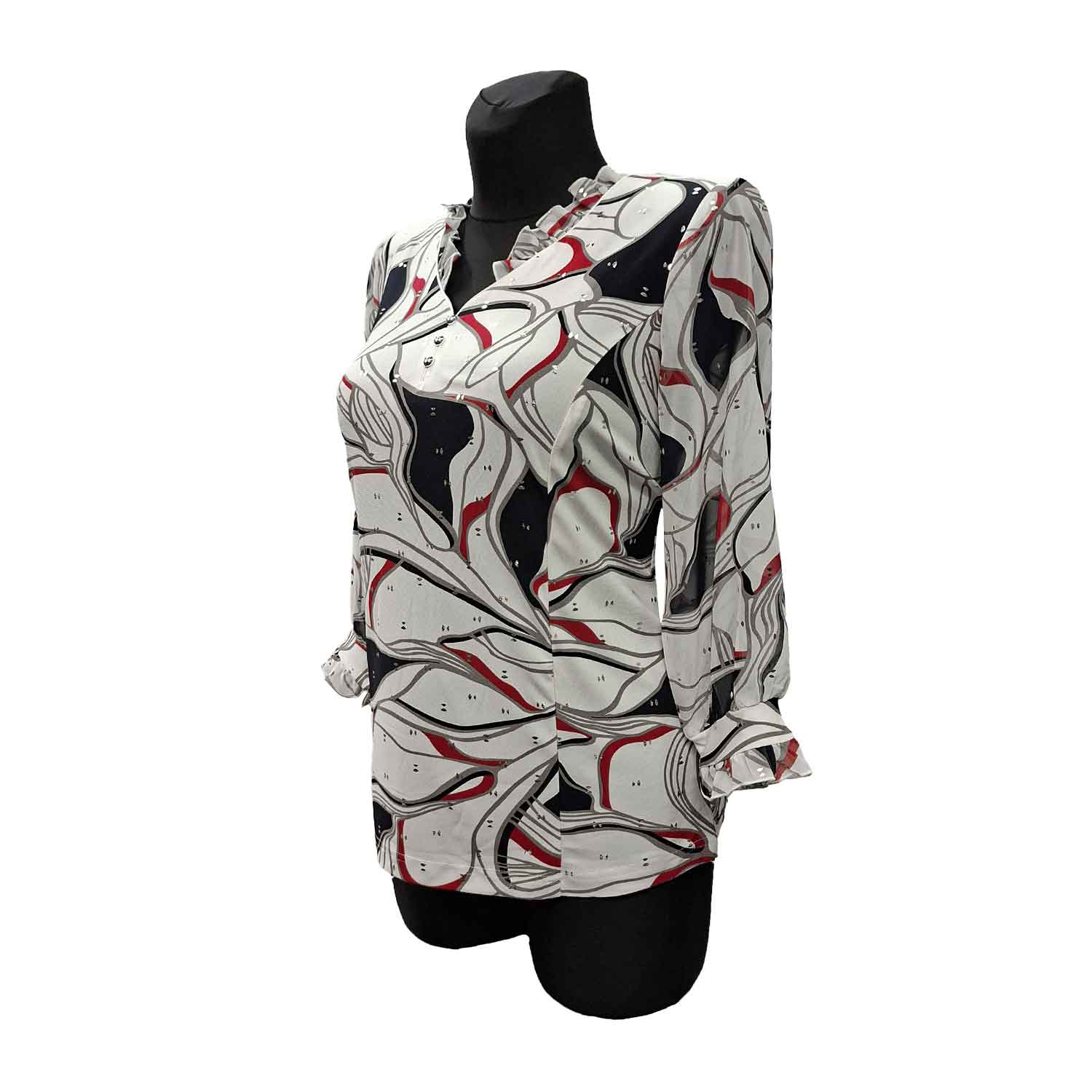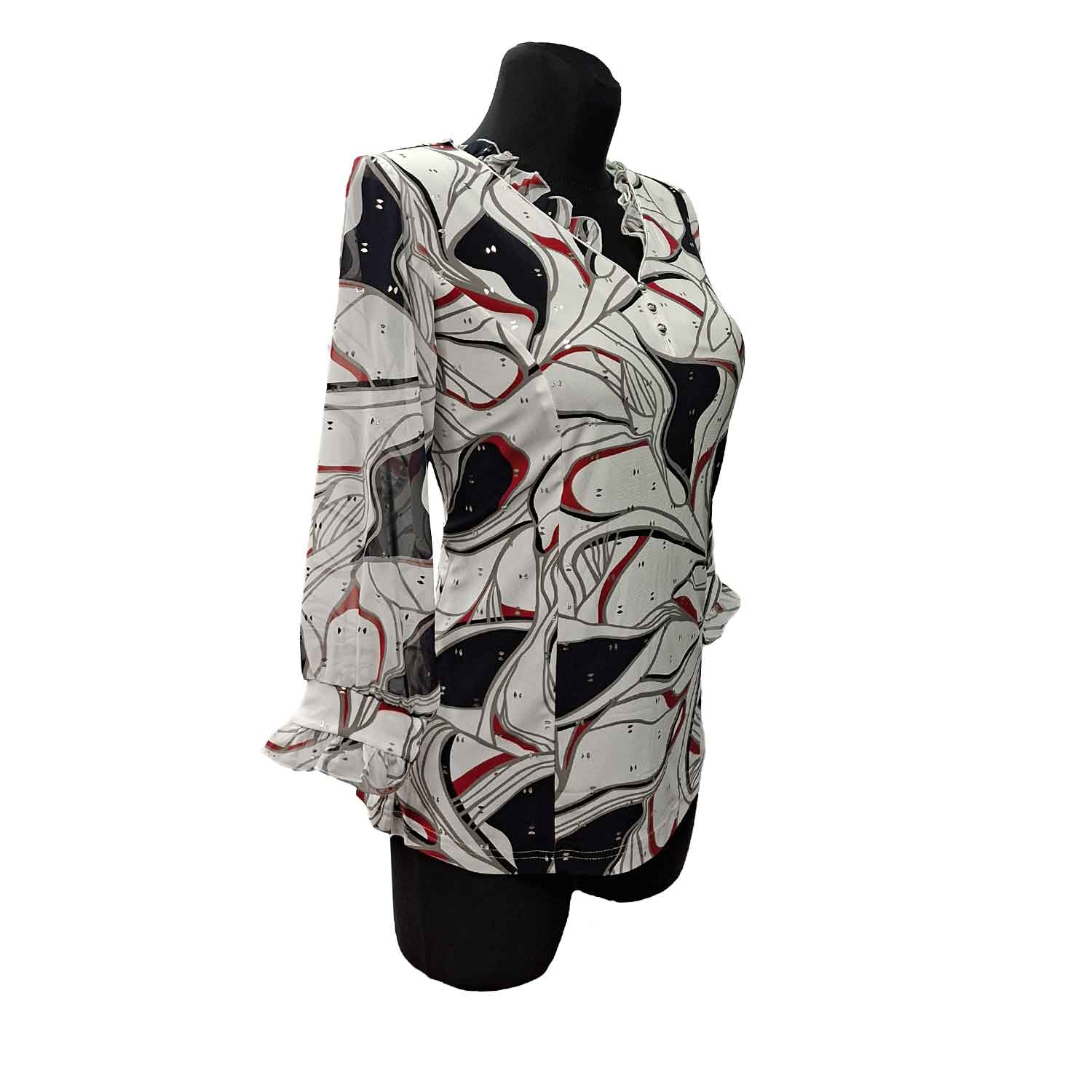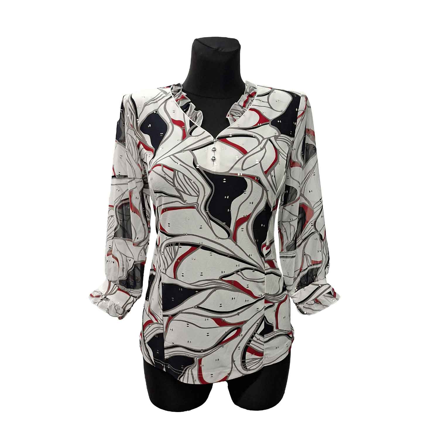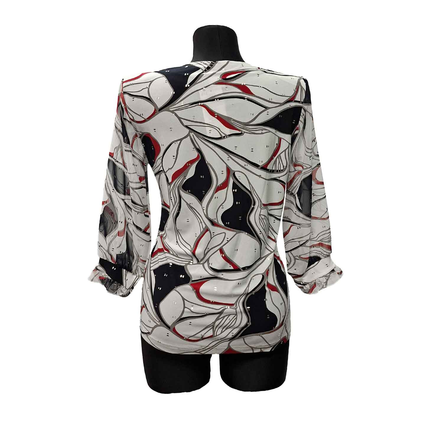 Puošni palaidinė peršviečiamomis rankovėmis.