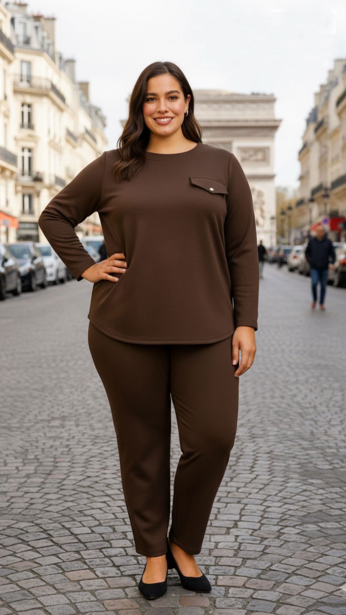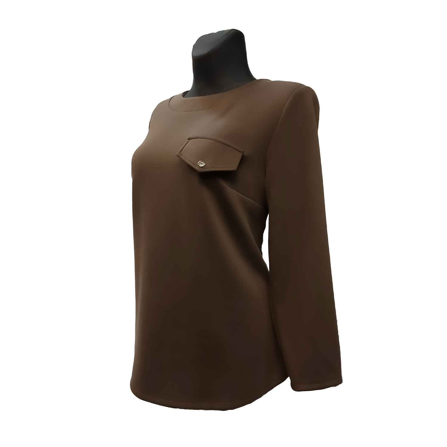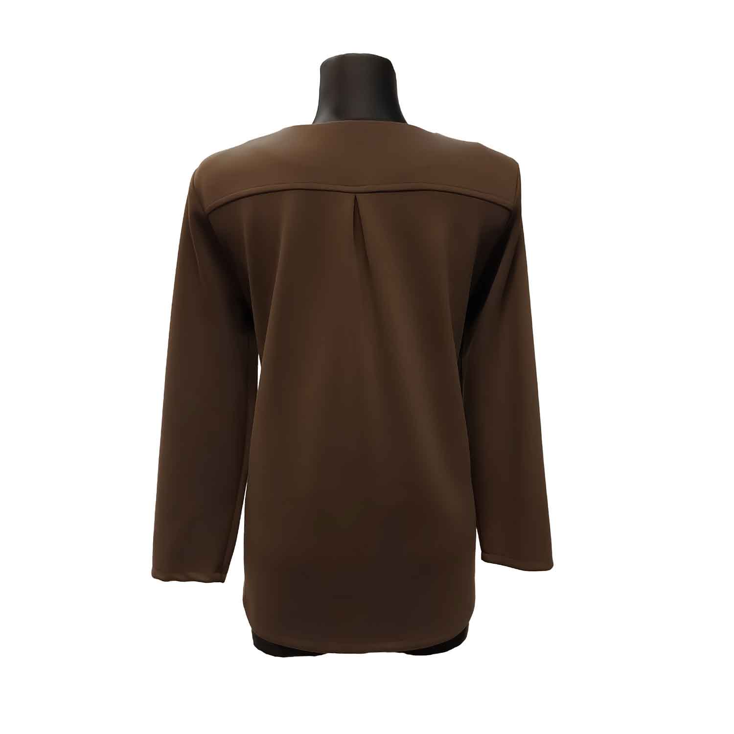 Patogi rudos spalvos palaidinė. Vidutinio storio tampri ir maloni medžiaga užtikrina komfortą. Didesni dydžiai.