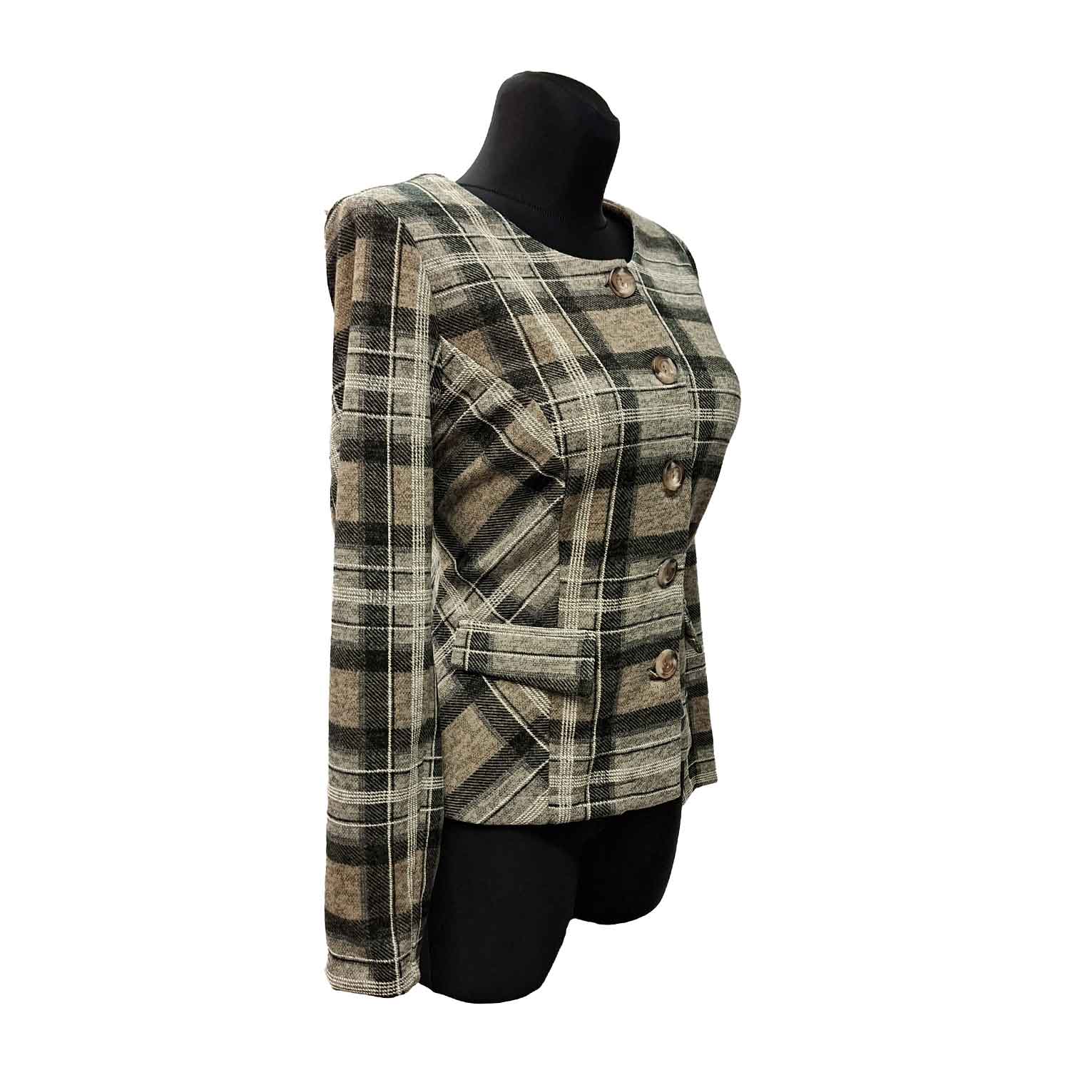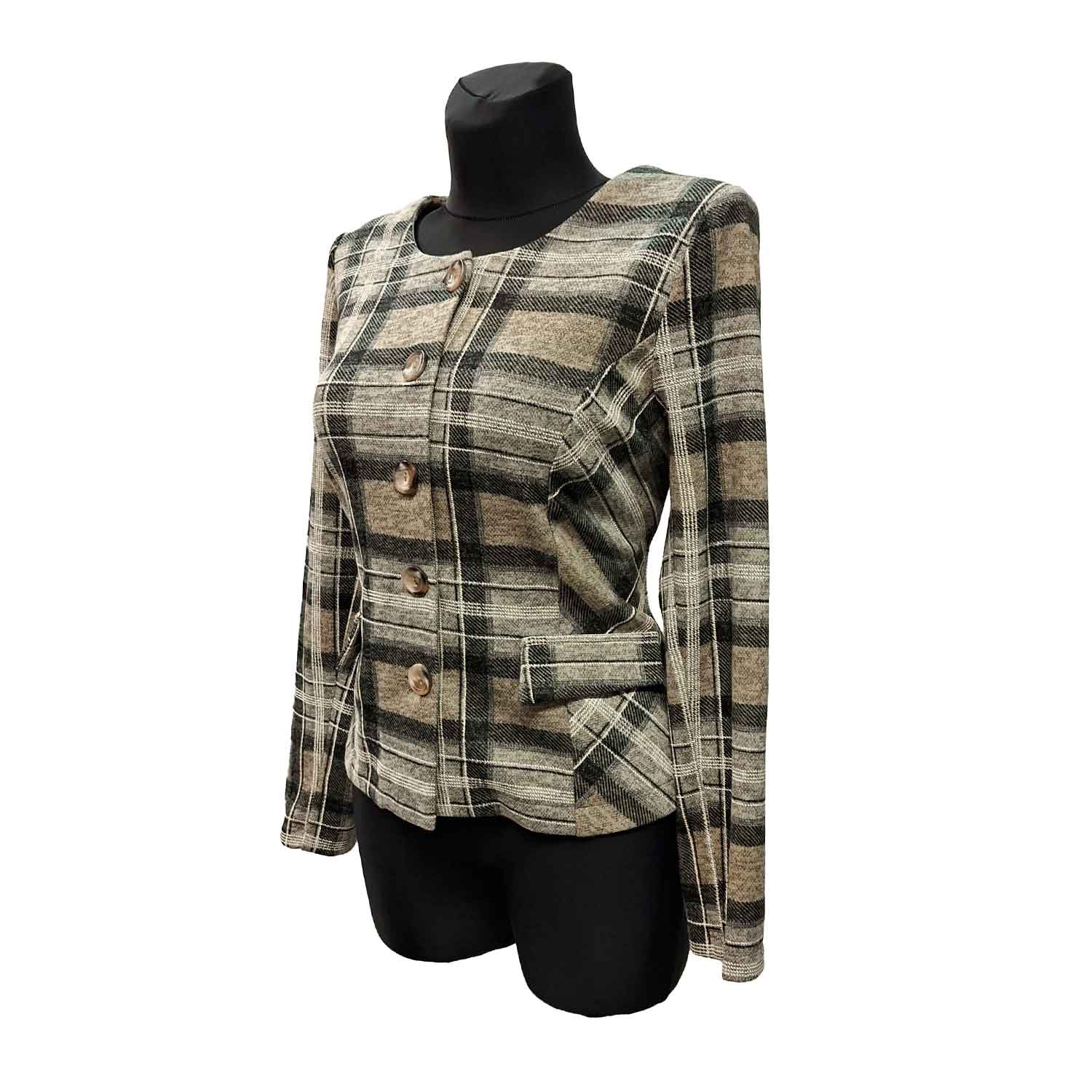 Patogus moteriškas švarkelis kasdienai ir darbui. Kišenių imitacija suteikia elegantišką įvaizdį. Švarkelis pilnai atsisega, o tamprus audinys užtikrina komfortą. Puikiai dera prie kelnių, sijono.