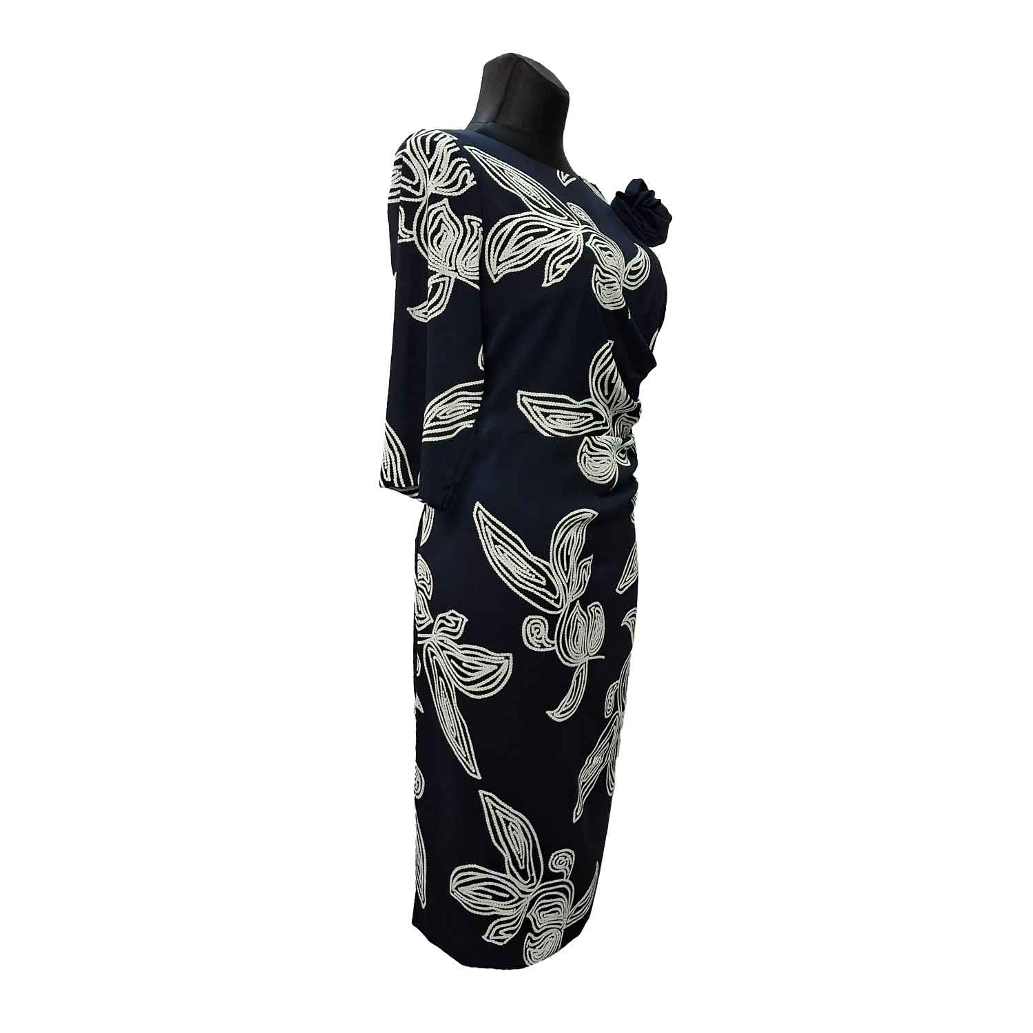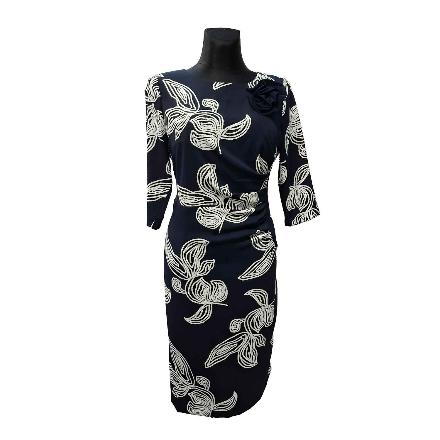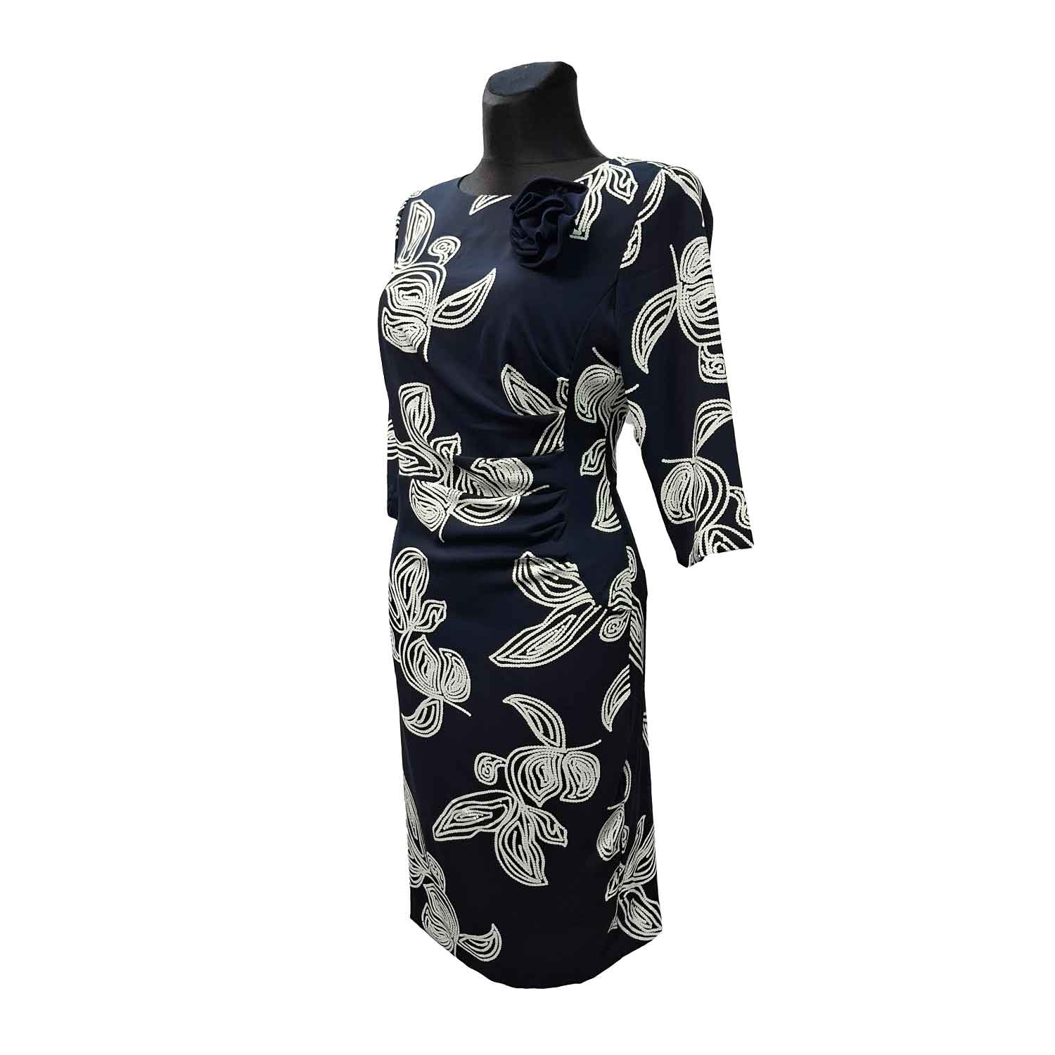 Puošni suknelė su pamušalu ir užtrauktuku žemiau kelių.