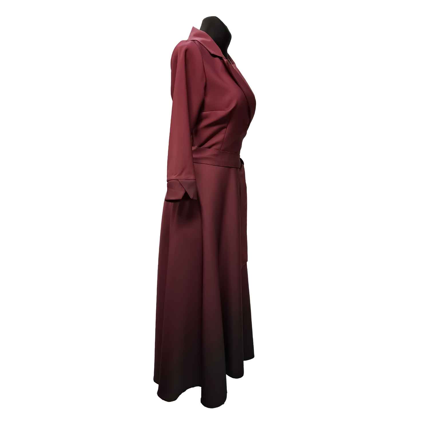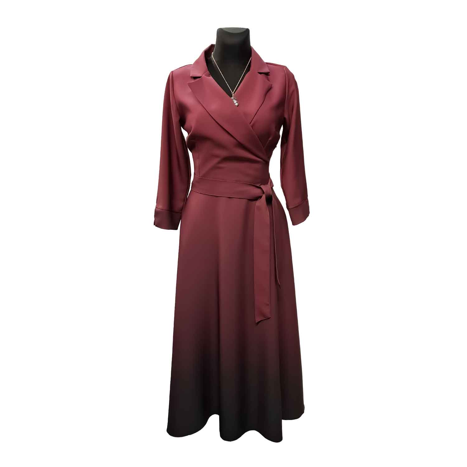 Ilgesnė puošni suknelė su apykakle ir kišenėmis. Apačioje platesnė. Komplekte diržiukas.
