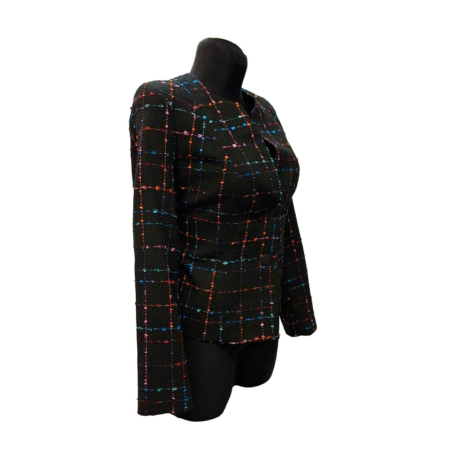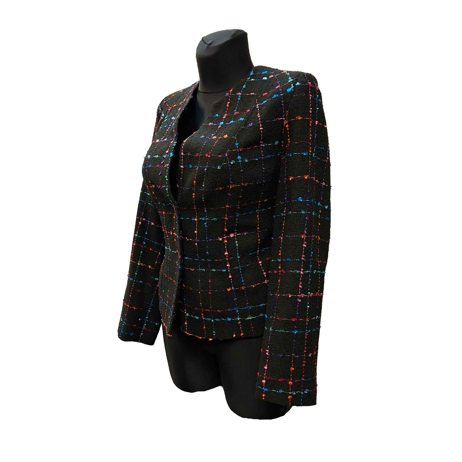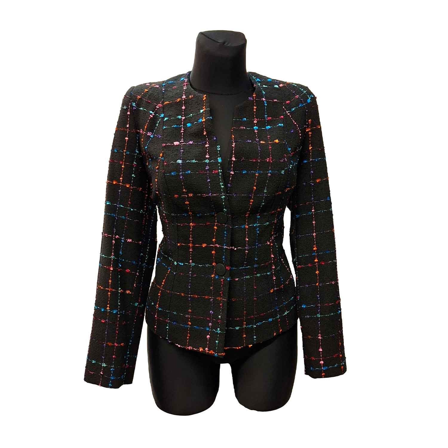 Klasikinis neilgas moteriškas švarkas su pamušalu, ilgomis rankovėmis.