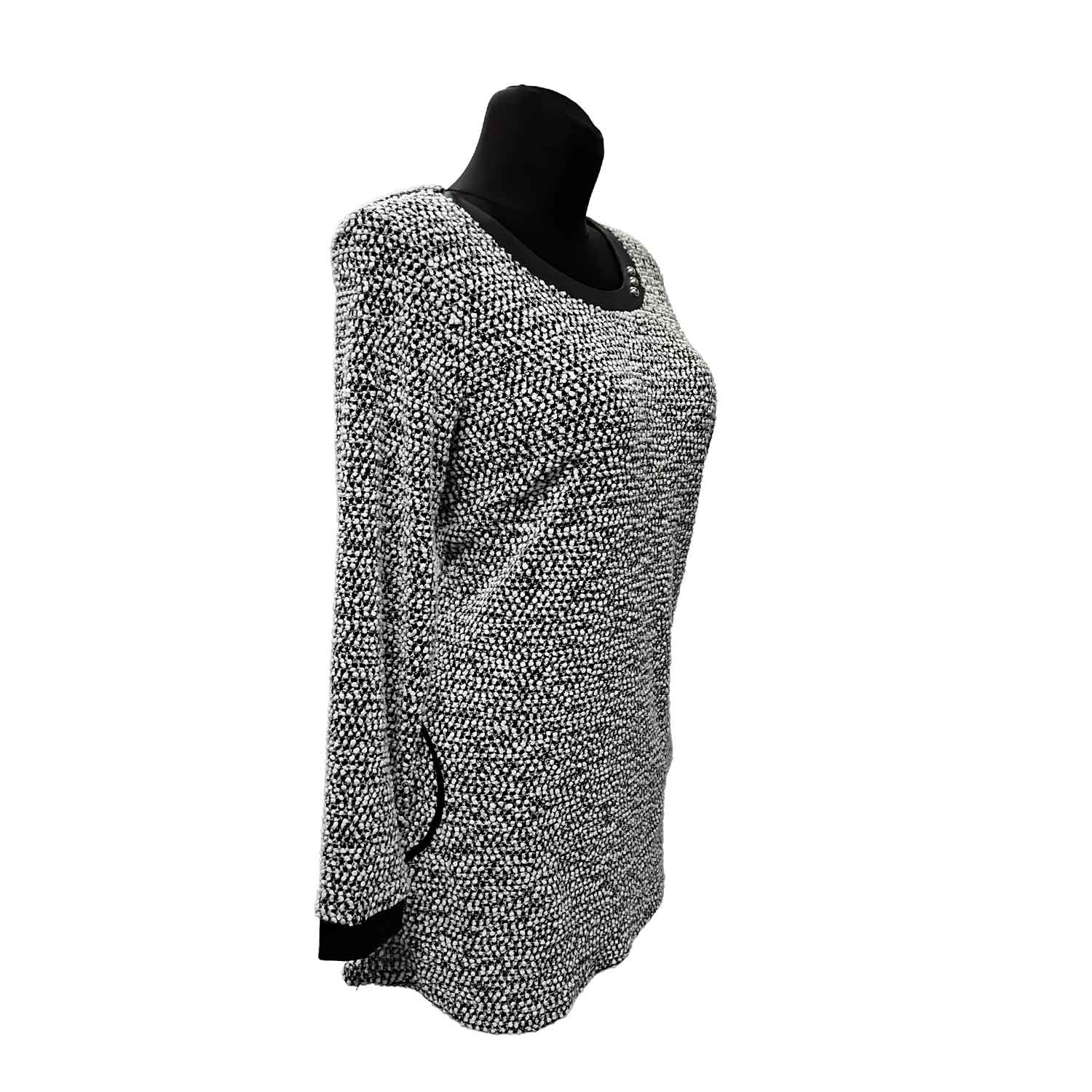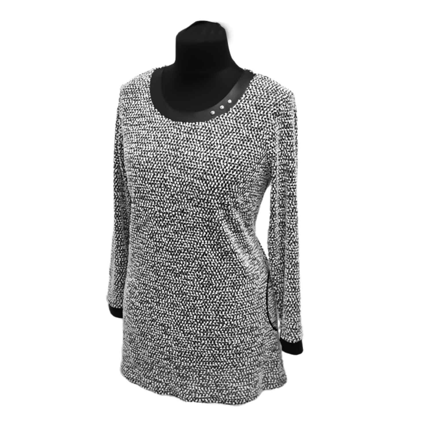 Minkšto audinio tunika su kišenėmis – puikiai tinka laisvalaikiui, 75 cm ilgis ir ilgos rankovės užtikrina praktiškumą.
