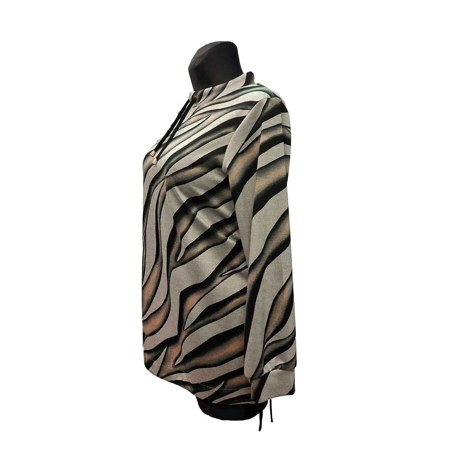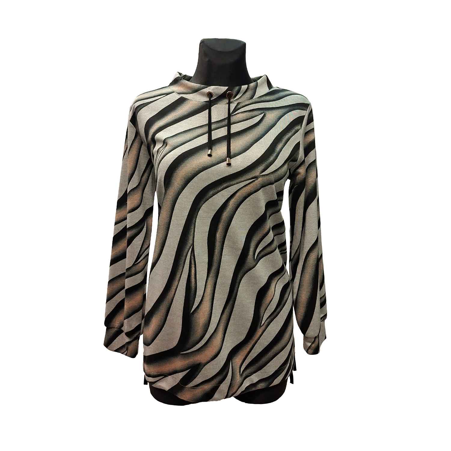 Patogi laisvalaikio tunika aukštesniu kaklu. Vidutinio storio, minkštas audinys.